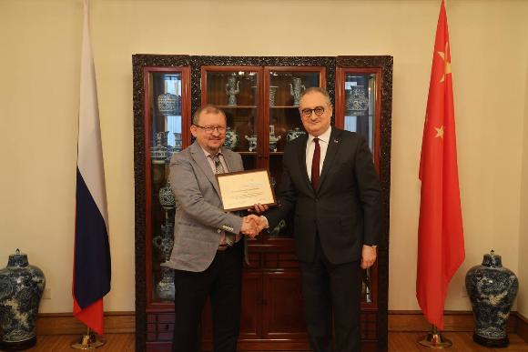 Посол России в Китае передал награду МИД РФ председателю Всемирного координационного совета российских соотечественников Михаилу Дроздову