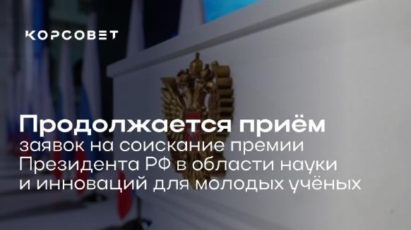 Продолжается приём заявок на соискание Премии Президента РФ в области науки и инноваций для молодых учёных