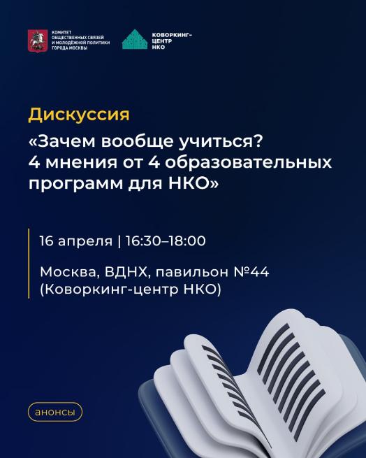 На Московском форуме НКО пройдет дискуссия «Зачем вообще учиться? 4 мнения от 4 образовательных программ для НКО»